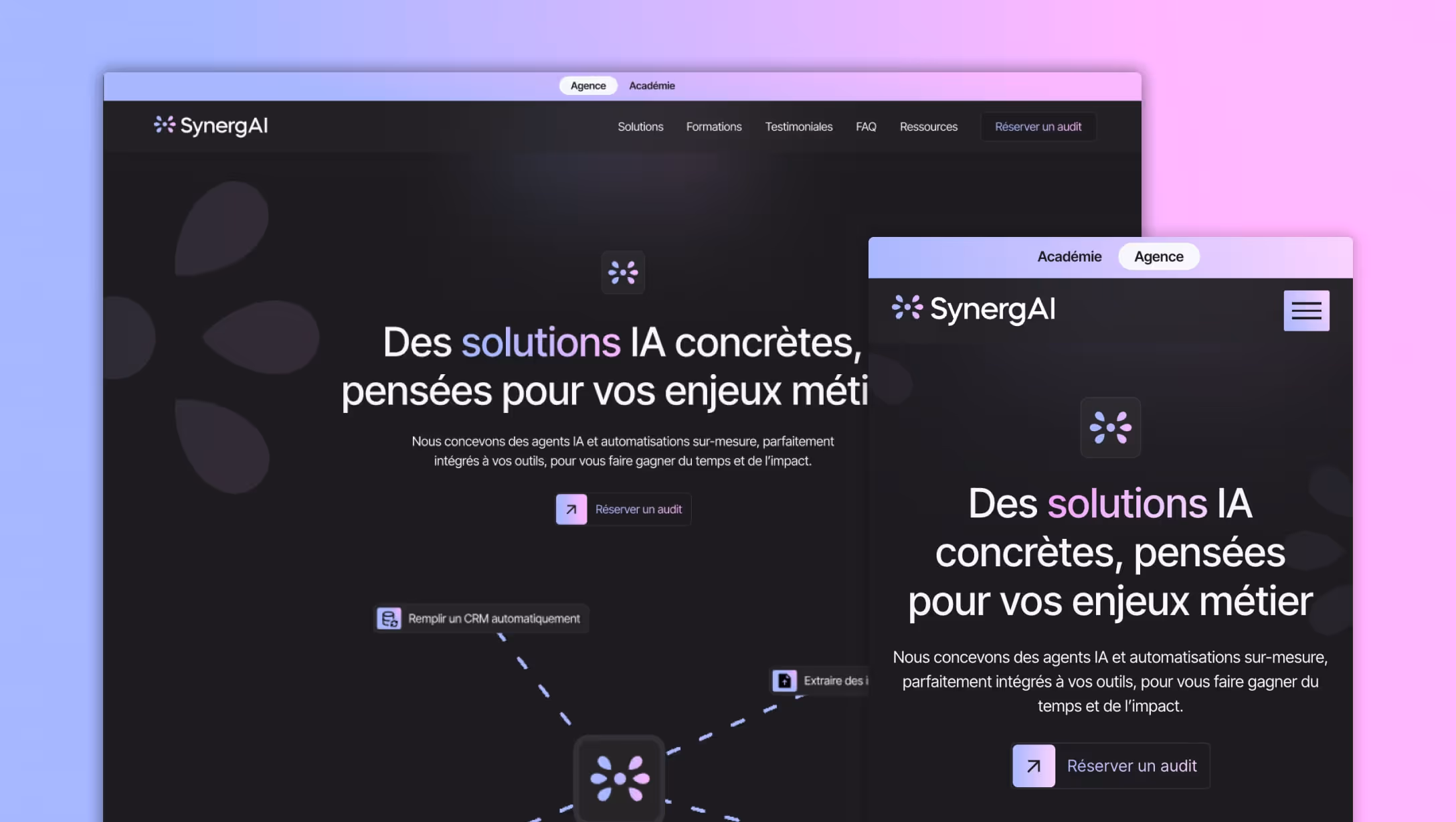 Nous avons travaillé avec des entreprises dans une large gamme d'industries : des agences, des PMEs, des entreprises SaaS, des start-ups, et bien d'autres encore. Il y a de fortes chances que nous ayons de l'expérience dans votre secteur d'activité. Cependant, même si nous ne possédons pas d'expérience spécifique dans votre industrie, nos principes sont universels et ont été appliqués avec succès à des clients dans divers secteurs.
